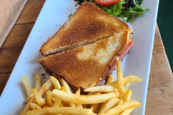 Ham and cheese sandwich with fries or vegetables, and your choice of salad.